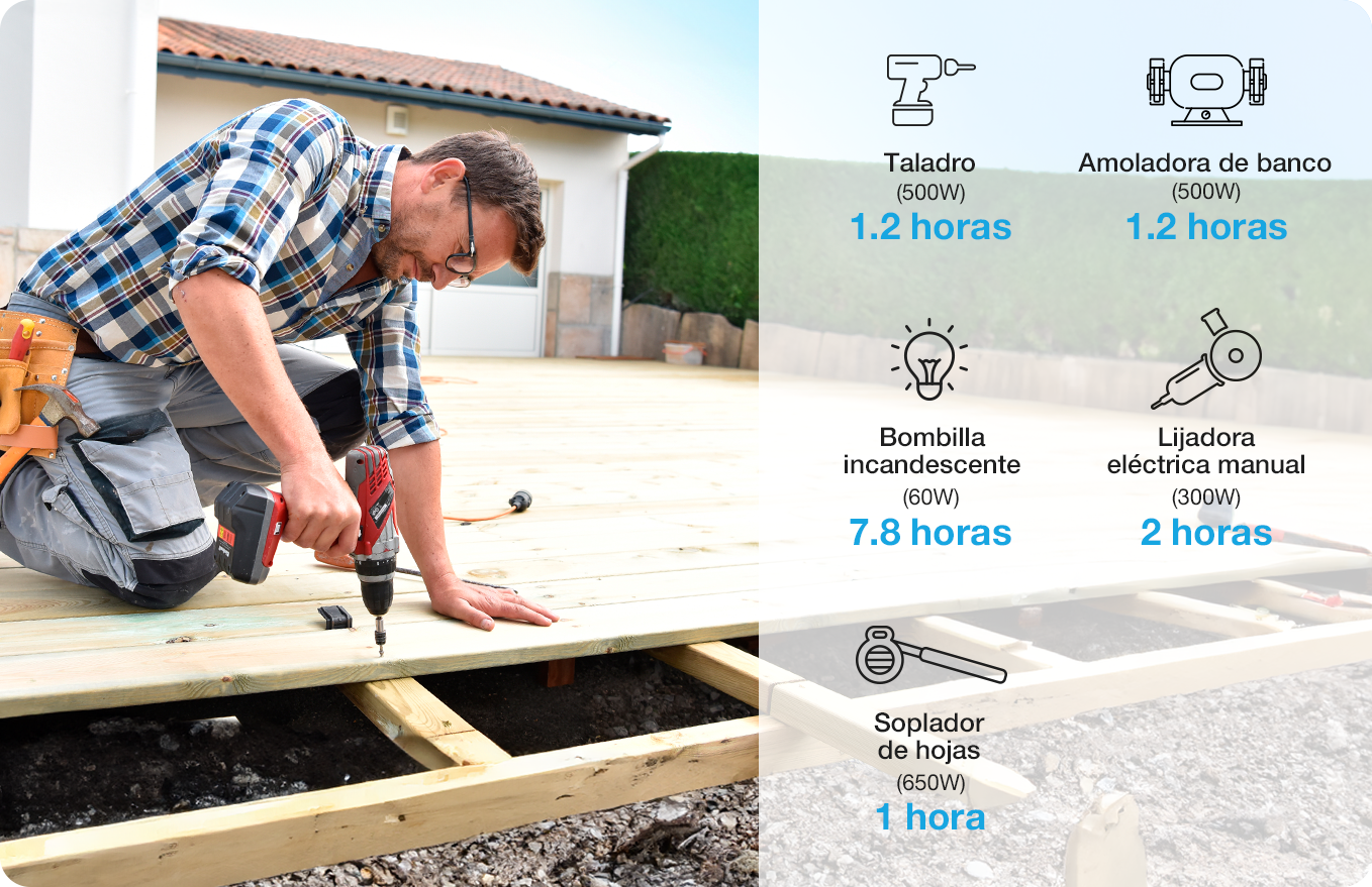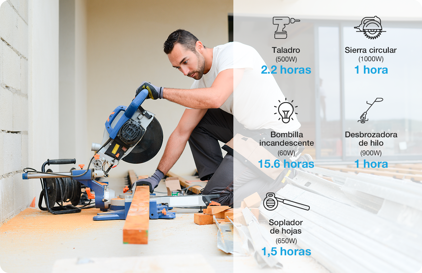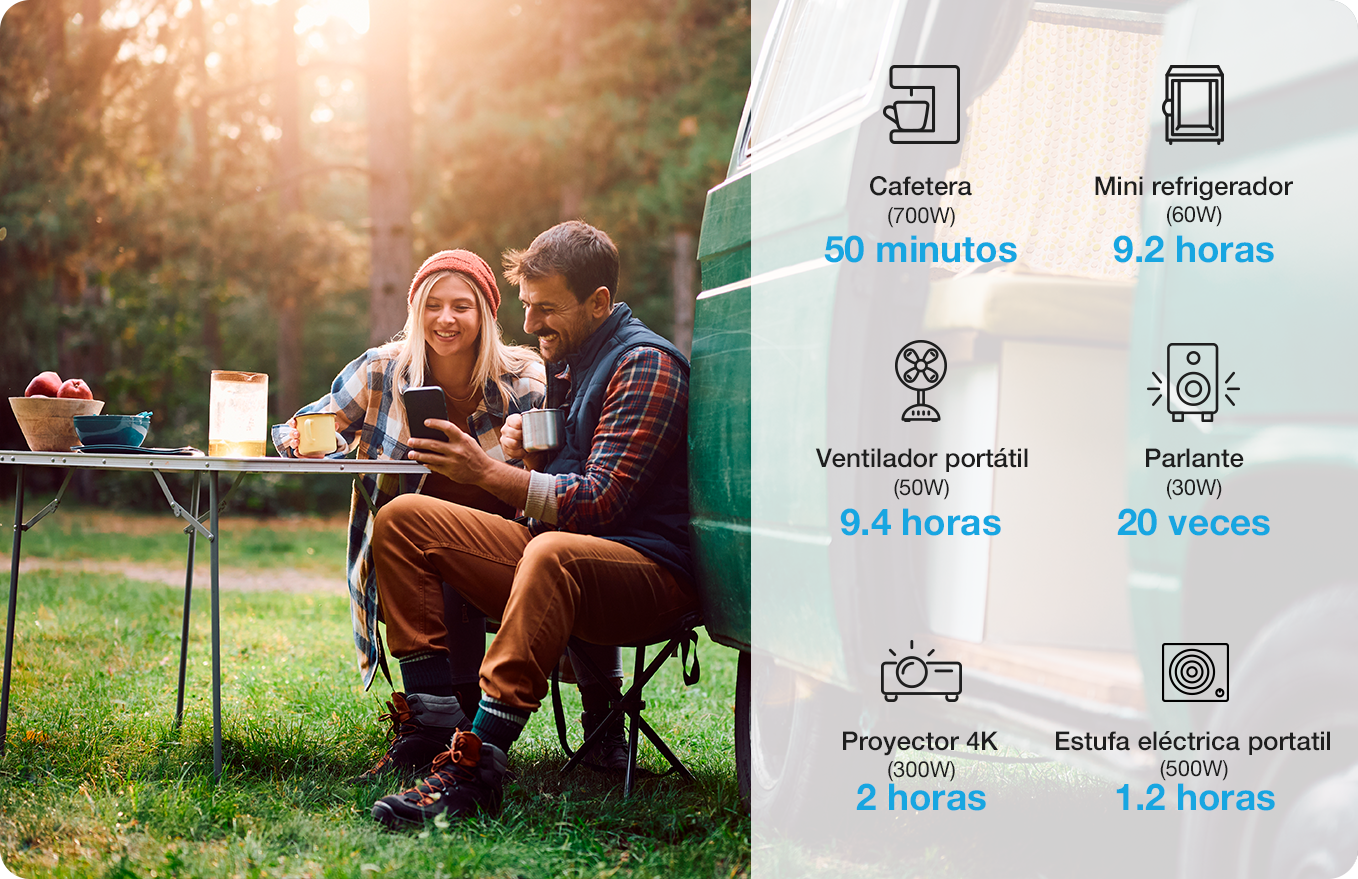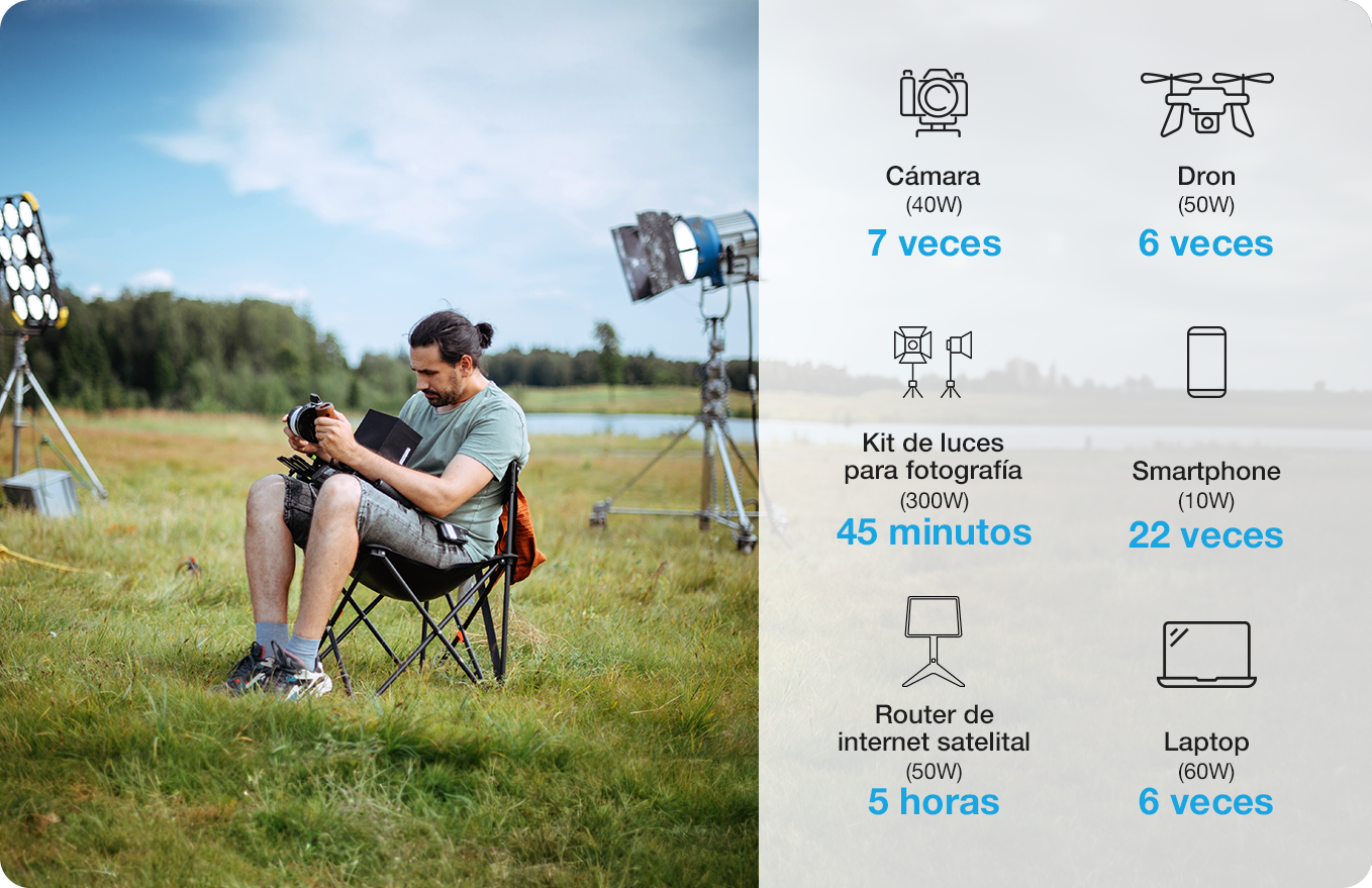 Energía de respaldo ideal para: El hogar y la oficina, celebraciones al aire libre, viajes por carretera, pesca y acampadas, rodajes de cine y fotografía, puestos de venta en ferias y mercados locales al aire libre, respuesta a desastres naturales, maquinaria y herramientas ligeras.
