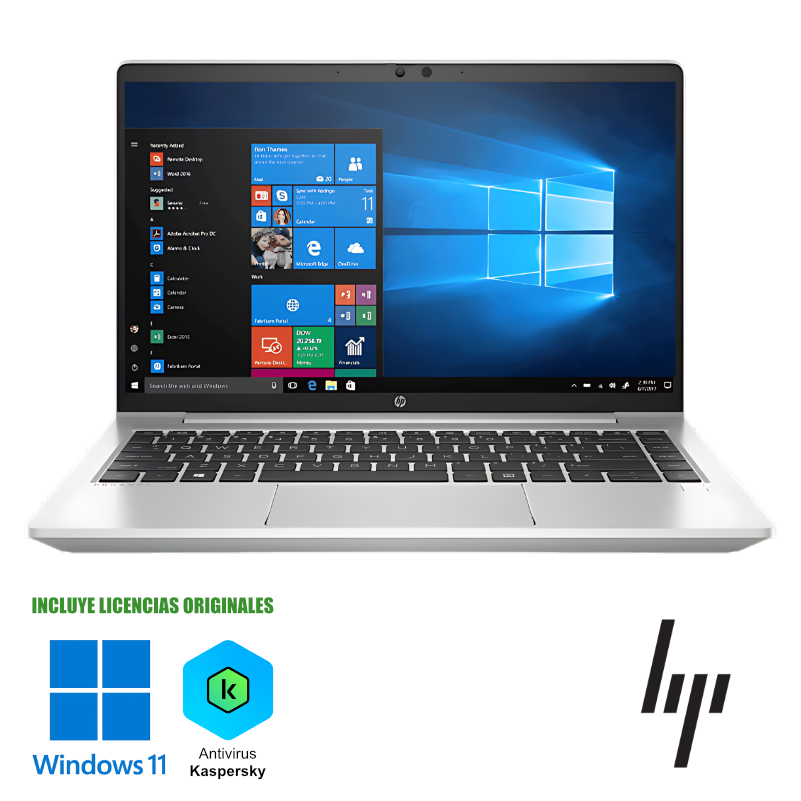 El equipo se entrega con sistema operativo Windows con licencia original permanente, aplicativos base instalados (herramientas multimedia, compresores y navegadores) y antivirus Kaspersky original con licencia vigente por un año, listo para usar desde el primer día.